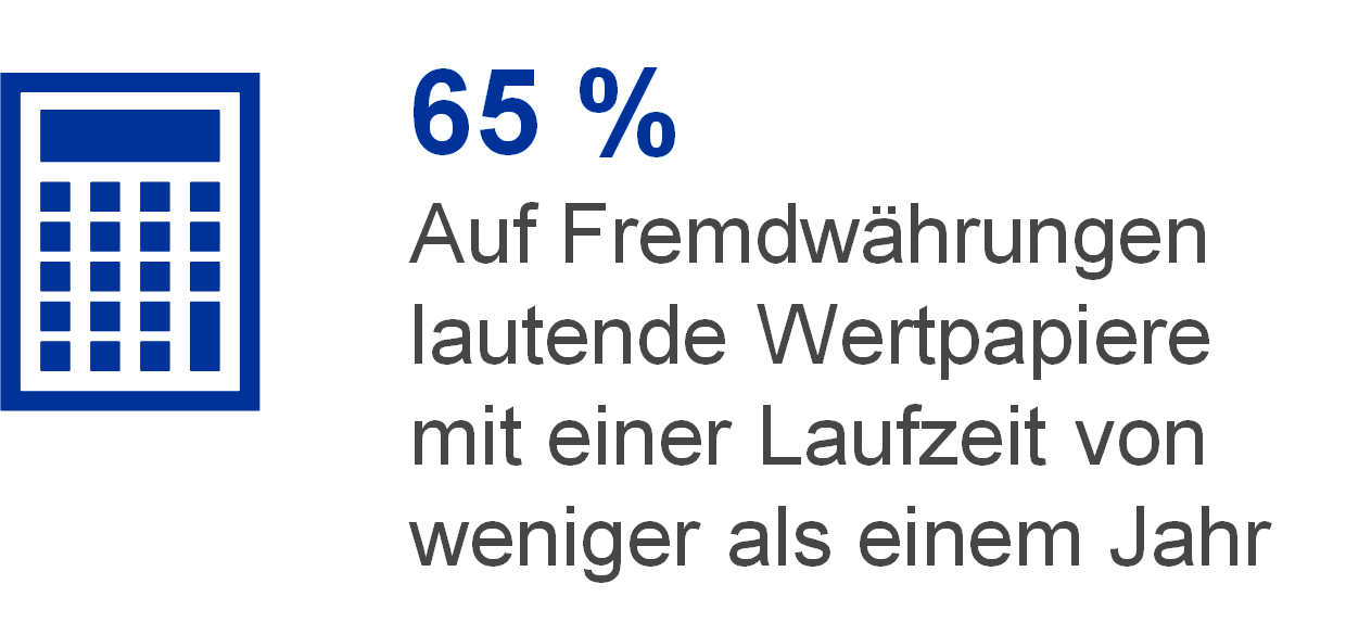 Die Fremdwährungsbestände ermöglichen es der EZB, gegebenenfalls Devisenmarktinterventionen zu finanzieren. Daher verfolgt die EZB bei der Verwaltung ihrer Fremdwährungsbestände drei Ziele, nämlich – in der Reihenfolge ihrer Priorität – Liquidität, Sicherheit und Rentabilität. Deshalb umfasst das Portfolio hauptsächlich Wertpapiere mit kurzen Laufzeiten (siehe Abbildung 7).