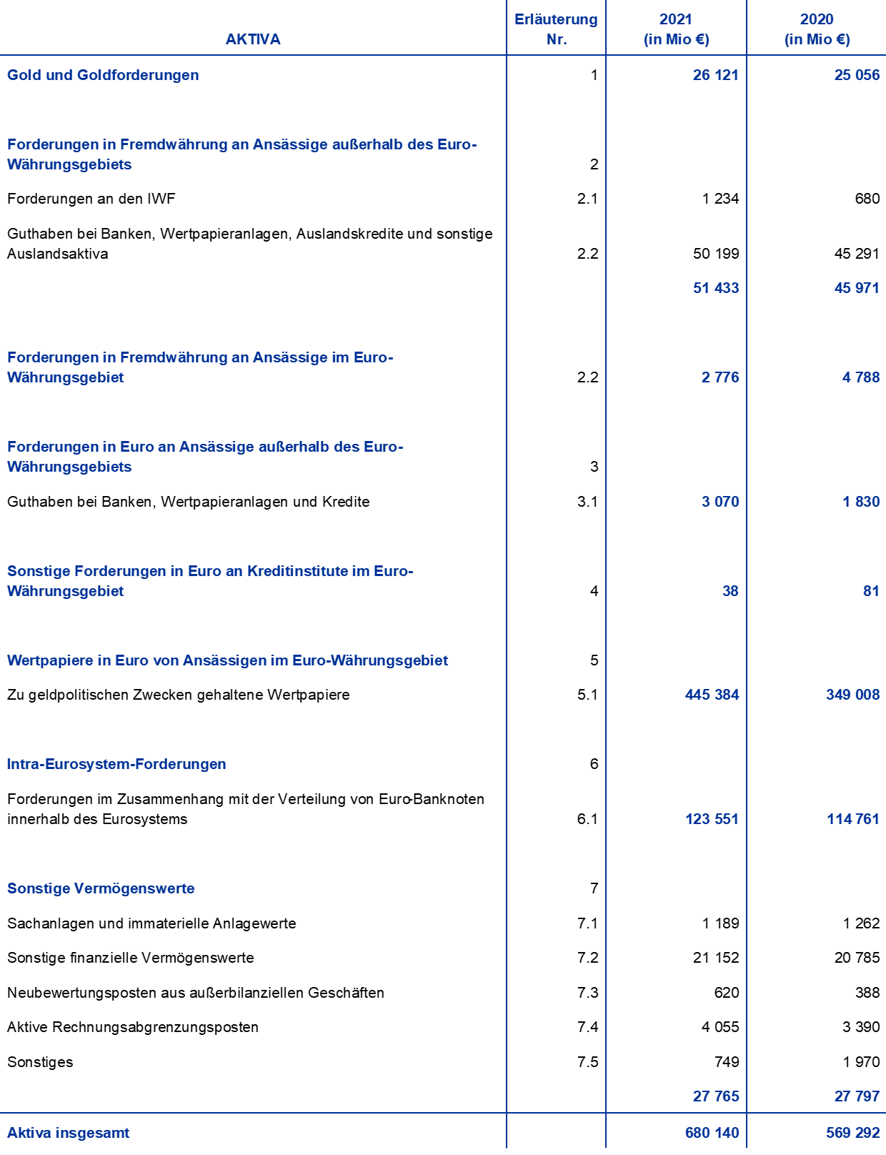 Diese Erläuterungen sind nicht Bestandteil des Jahresabschlusses der EZB für das Jahr 2021.
