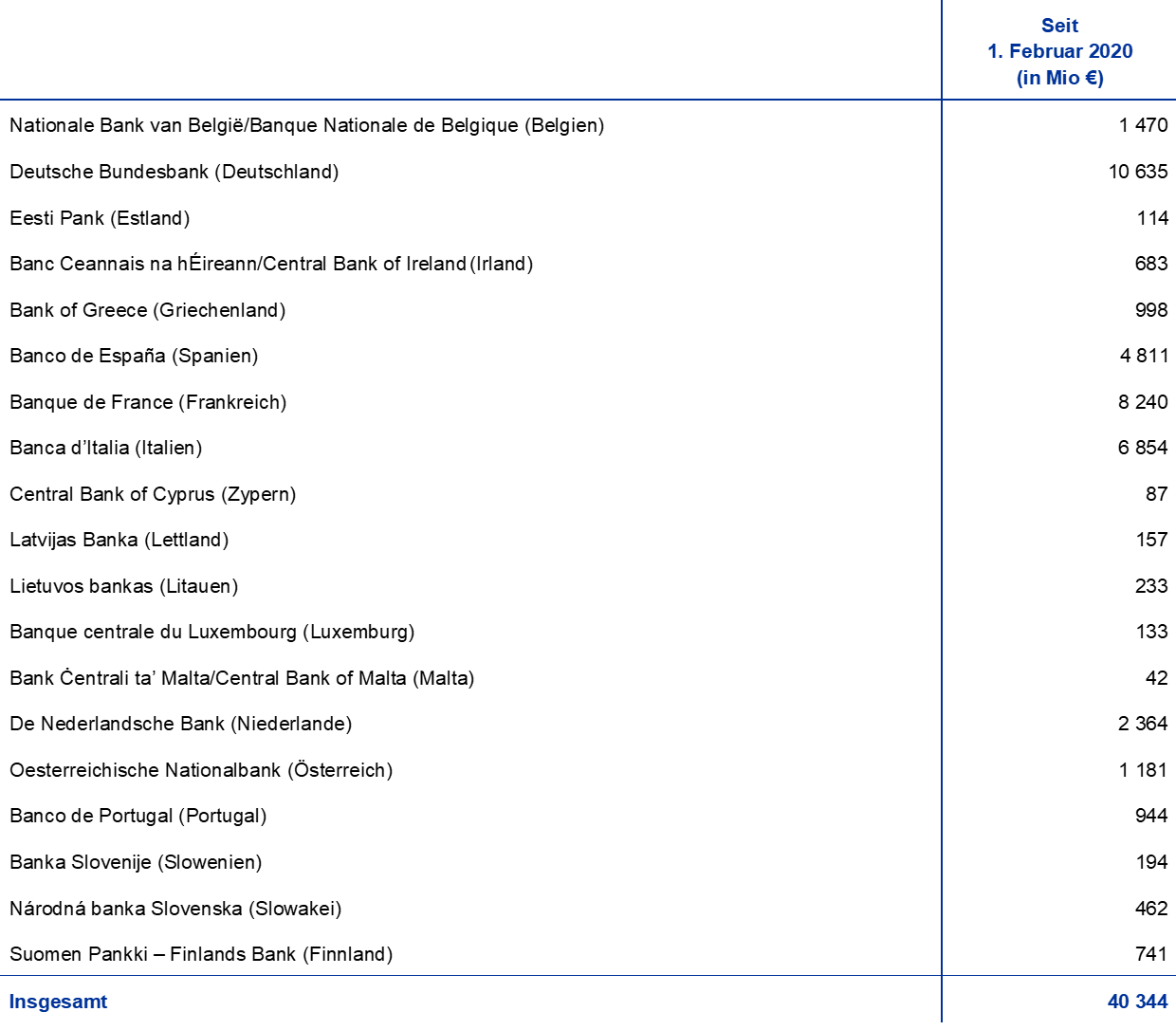14. Siehe Pressemitteilung vom 30. Januar 2020 zum gezeichneten Kapital der EZB nach dem Ausscheiden der Bank of England aus dem ESZB.