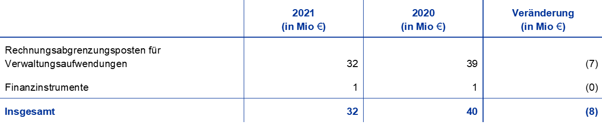 22. Rechnungsabgrenzungsposten und Rückstellungen für Verwaltungsaufwendungen werden erst ab einem Mindestbetrag von 100 000 € erfasst.
