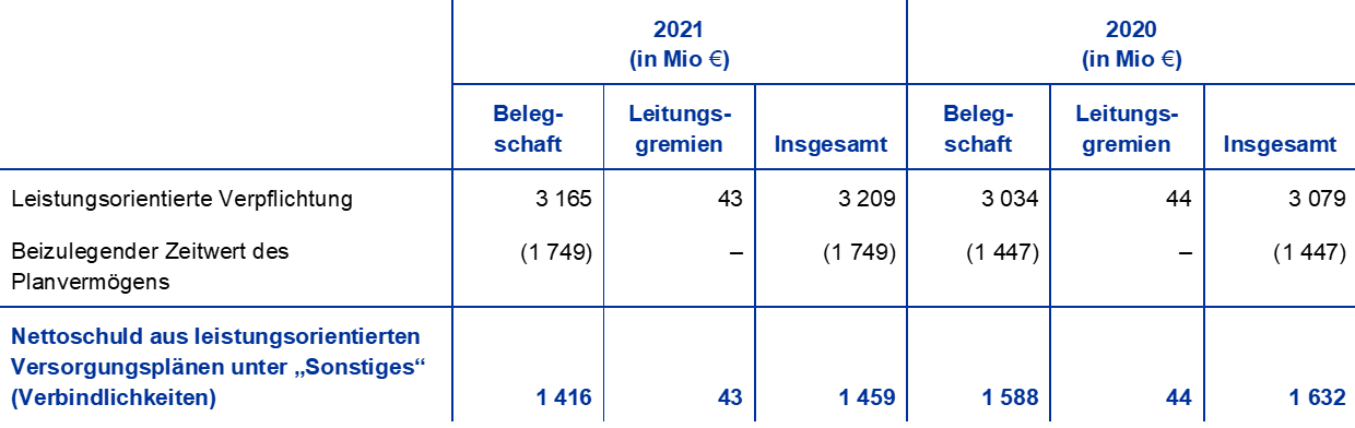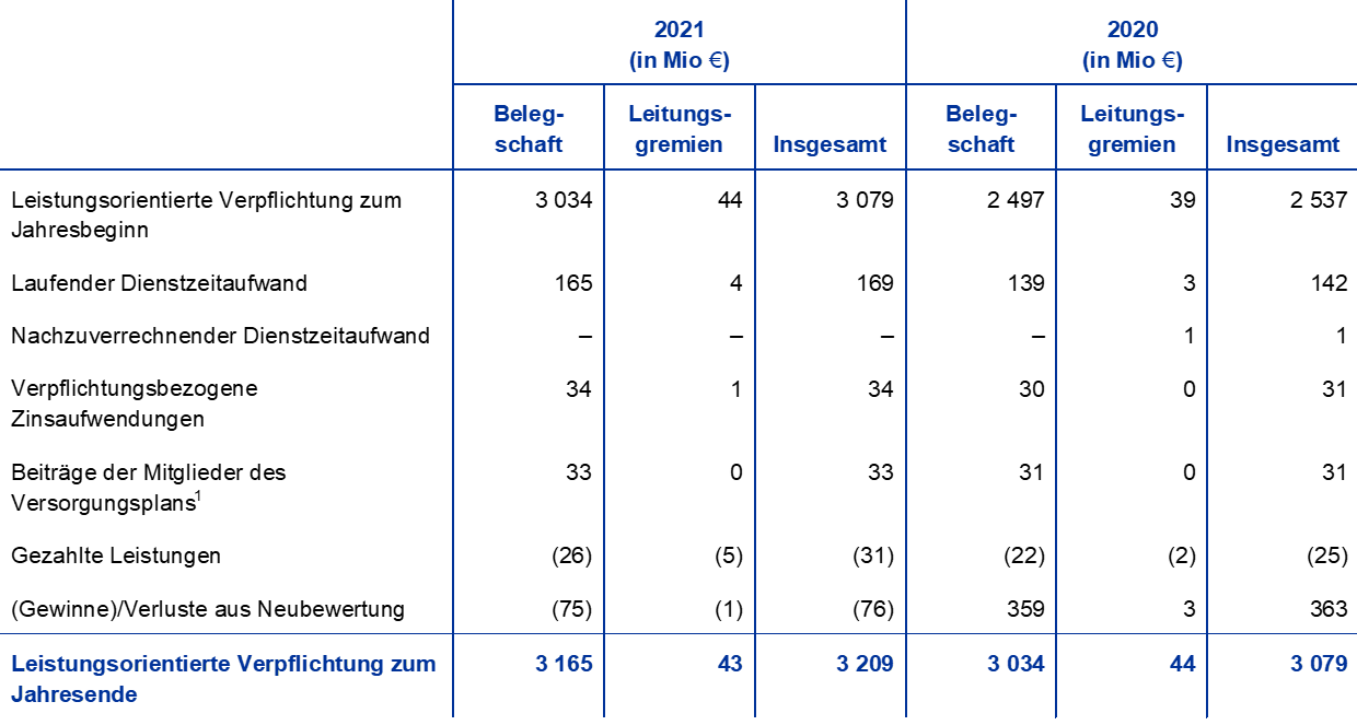 40. Die leistungsorientierte Säule des Plans spiegelt nur die Pflichtbeiträge der EZB und der Mitarbeiter wider. Die im Jahr 2021 von den Mitarbeitern im Rahmen einer beitragsorientierten Säule auf freiwilliger Basis geleisteten Beiträge beliefen sich auf 220 Mio € (2020: 186 Mio €). Diese werden in das Planvermögen investiert. Ihnen steht eine entsprechende Verpflichtung in gleicher Höhe gegenüber.