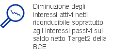 Gli interessi attivi netti della BCE si sono portati a 900 milioni di euro registrando una riduzione di 666 milioni (grafico 14) riconducibile soprattutto agli interessi passivi sul saldo netto Target2 della BCE. A tale riduzione hanno contribuito anche gli interessi passivi connessi alla remunerazione dei crediti delle BCN dei paesi dell’area dell’euro per il trasferimento delle riserve ufficiali alla BCE. Gli interessi passivi sono stati in parte compensati dall’aumento degli interessi attivi (1) sui crediti della BCE derivanti dall’allocazione delle banconote in euro all’interno dell’Eurosistema, (2) sulle riserve valutarie e (3) sui titoli detenuti per finalità di politica monetaria.