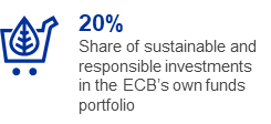 The share of green investments in the own funds portfolio continued to increase, rising from 13% at the end of 2022 to 20% at the end of 2023. The ECB plans to further increase this share over the coming years.[12] Since 2021 purchases of green bonds in secondary markets are complemented by investments in the euro-denominated green bond investment fund for central banks launched by the Bank for International Settlements in January 2021.