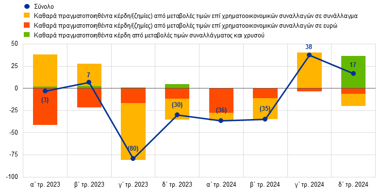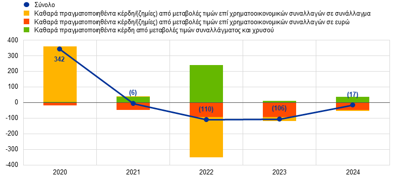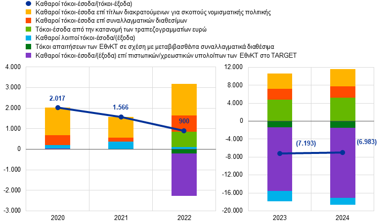 Για πληροφορίες σχετικά με τις προσαρμογές των στοιχείων για το 2023, βλ. το τμήμα "Αλλαγές στην παρουσίαση των οικονομικών καταστάσεων" στην ενότητα 2.3 "Λογιστικές πολιτικές" των οικονομικών καταστάσεων της ΕΚΤ.