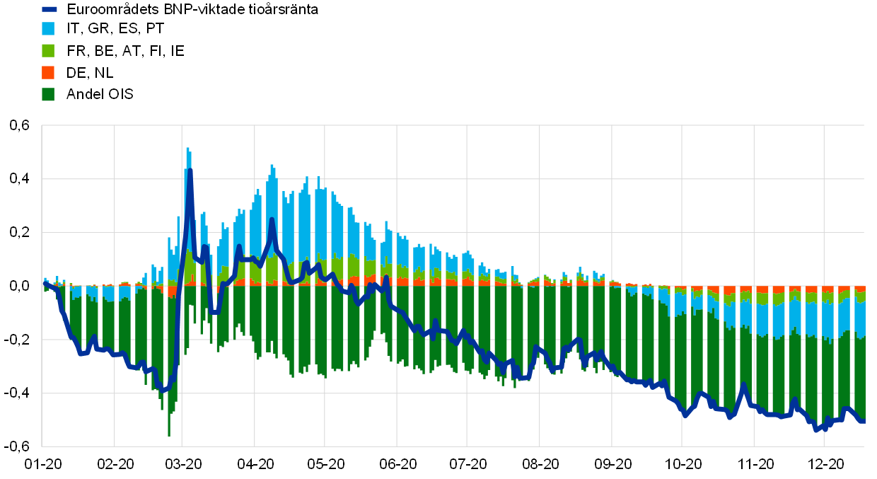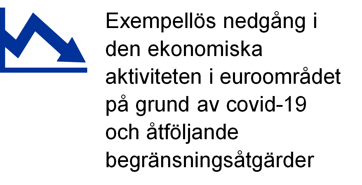Ekonomin i euroområdet drabbades under 2020 av en extraordinär och allvarlig chock från coronaviruspandemin (covid-19). Den ekonomiska aktiviteten minskade kraftigt under det första halvåret till följd av nedstängningsåtgärder och ökad riskaversion. Den kraftfulla och koordinerade penning- och finanspolitiska responsen, i kombination med positiva nyheter om vaccin, bidrog till att stabilisera aktiviteten under det andra halvåret. Totalt sett sjönk BNP i euroområdet med 6,6 procent under 2020. Den årliga totala inflationen sjönk till 0,3 procent från 1,2 procent 2019, främst som resultat av sjunkande energipriser men även på grund av vissa faktorer relaterade till pandemin. Till exempel bidrog de sektorer som drabbades hårdast av pandemin, t.ex. rese- och hotellbranschen, till att inflationen sjönk under det andra halv året.