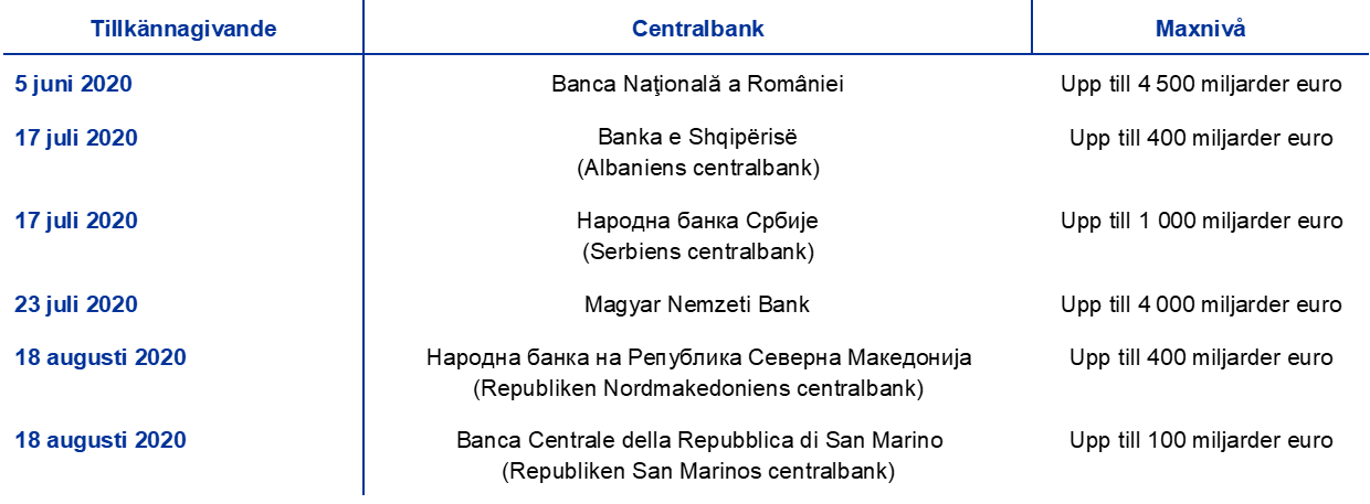 - Se även Panetta, F. och Schnabel, I., ”The provision of euro liquidity through the ECB’s swap and repo operations”, The ECB Blog, ECB, 19 augusti 2020.