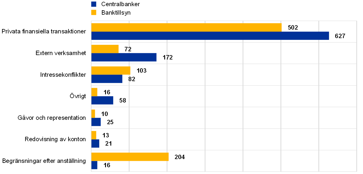 ECB:s etikkommitté har i enlighet med uppförandekoden för medlemmar i organ på hög nivå inom Europeiska centralbanken bedömt de intresseförklaringar som har lämnats in av ledamöterna i direktionen, ECB-rådet och tillsynsnämnden för publicering på ECB:s gemensamma webbplatser. Under 2020 kom etikkommittén med ett ökat antal yttranden. Majoriteten av dessa gällde aktiviteter som har bedrivits som privatperson och aktiviteter efter avslutad tjänstgöring.