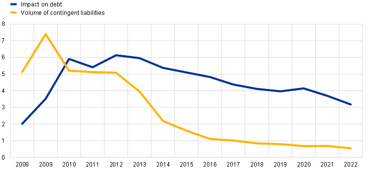 Impact of financial sector support measures on euro area debt and the potential impact on debt from outstanding contingent liabilities, 2008-22