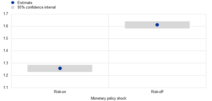 b) Corporate bond sensitivity to shocks in risk-on and risk-off periods