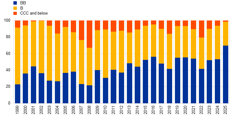 Decomposition of high-yield bond issuance by rating