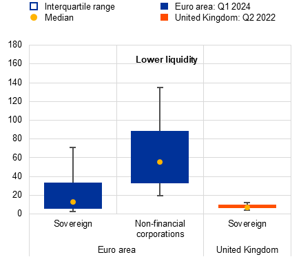 The large footprint of investment funds in the euro area corporate bond market makes this segment more vulnerable to disruption. The distribution of the euro area investment funds’ share in the outstanding amounts for individual securities suggests that the sector has a moderate footprint in the euro area sovereign bond market (Chart A, panel a). With a well-diversified investor structure showing differing sensitivity to global and euro area risk events,[3] these bonds appear less susceptible to outflows of specific types of investor. By contrast, investment funds have a much larger footprint in the euro area corporate bond market. In the event of a shock leading to forced asset sales, this market would be more likely to become one-sided. The lack of potential buyers might then result in outsized price adjustments.[4] In addition, euro area corporate bonds held by investment funds are substantially less liquid than sovereign bonds (Chart A, panel b), suggesting that forced sales would have a much bigger impact on prices.