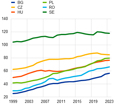 Der für diesen Bericht maßgebliche Beobachtungszeitraum erstreckt sich vom 20. Juni 2022 bis zum 19. Juni 2024. Bei allen bilateralen Wechselkursen handelt es sich um offizielle Referenzkurse der EZB (siehe Kapitel 6 in der englischen Gesamtfassung des Konvergenzberichts).