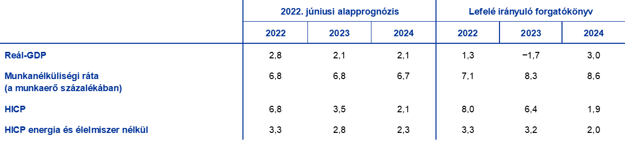 Az euroövezet 2022. júniusi alapprognózisa és lefelé irányuló forgatókönyve