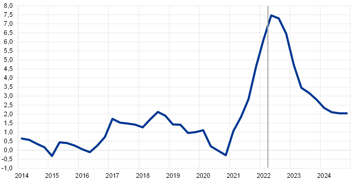 O aumento acentuado da inflação elevou o risco de efeitos de segunda ordem sobre a inflação através de reivindicações de salários mais elevados. A recente subida pronunciada da inflação para taxas sem precedentes na história da área do euro é um fator que pode ter um impacto importante nas perspetivas para os salários, o que constitui a primeira fase em potenciais ciclos de interação de segunda ordem entre salários e preços. A presente caixa avalia as consequências macroeconómicas de uma possível alteração da relação entre salários e preços, devido à inflação elevada[11].