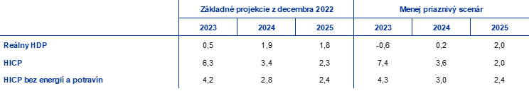 Základné projekcie a menej priaznivý scenár vývoja v eurozóne z decembra 2022