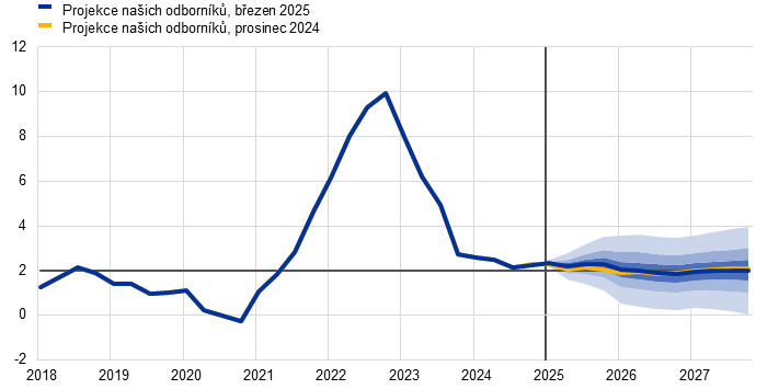 Projekce odborníků ECB | březen 2025 | 0,8 | 0,9 | 1,2 | 1,3 | 2,4 | 2,3 | 1,9 | 2,0 | 2,8 | 2,2 | 2,0 | 1,9 |
