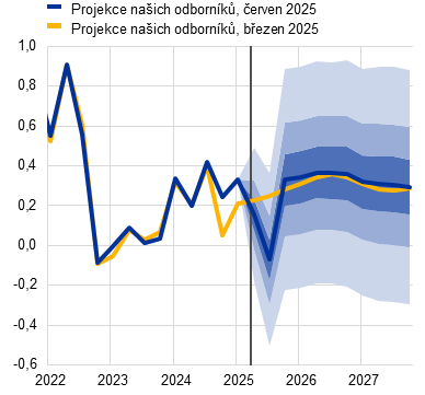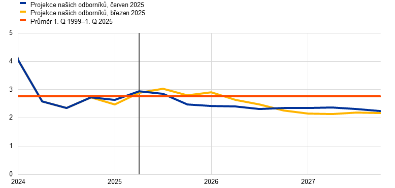 Projekce odborníků Eurosystému | červen 2025 | 0,9 | 1,1 | 1,3 | 2,0 | 1,6 | 2,0 | 2,4 | 1,9 | 1,9 |