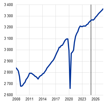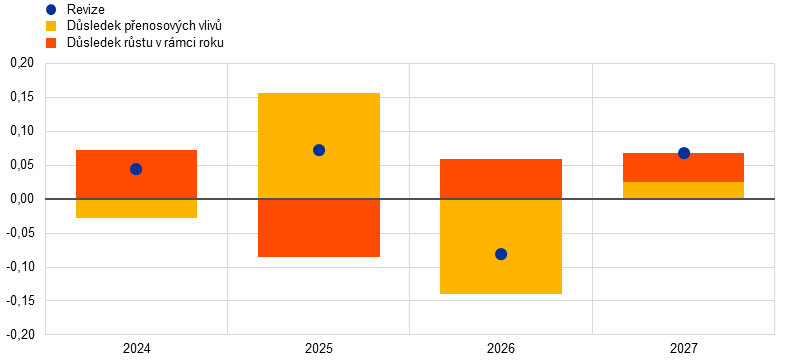 Viz také „The performance of Eurosystem/ECB staff projections for economic growth since the COVID-19 pandemic“, Ekonomický bulletin, č. 7, ECB, 2024.