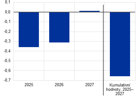 Granty NGEU (bez dopadu na makroúrovni na příjmové straně rozpočtu) se pro rok 2026 odhadují blízko 0,5 % HDP a pro rok 2027 pouze mírně nad nulou.