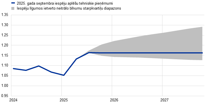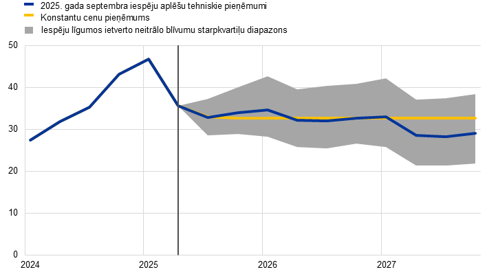 1. Pēdējais datu aktualizēšanas termiņš attiecībā uz tehniskajiem pieņēmumiem bija 2025. gada 15. augusts. Starptautiskās vides un eurozonas makroekonomiskās iespēju aplēses tika pabeigtas 2025. gada 28. augustā.