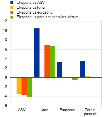 Spēcīgākas tirdzniecības novirzīšanas un zemāku Ķīnas eksporta cenu ietekme uz eksportu