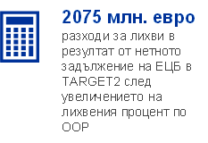 Нетният доход от лихви на ЕЦБ намаля с 666 млн. евро на 900 млн. евро (Графика 14), главно вследствие на разходи за лихви, произтичащи от нетното задължение на ЕЦБ в TARGET2. За спада допринесоха също разходите за лихви, свързани с олихвяването на вземанията на НЦБ от еврозоната във връзка с прехвърлени на ЕЦБ валутни резерви. Тези разходи бяха частично компенсирани от по-високи приходи от лихви, произтичащи от i) вземанията на ЕЦБ във връзка с разпределянето на евробанкноти в рамките на Евросистемата, ii) чуждестранни резервни активи и iii) ценни книжа, държани за целите на паричната политика.