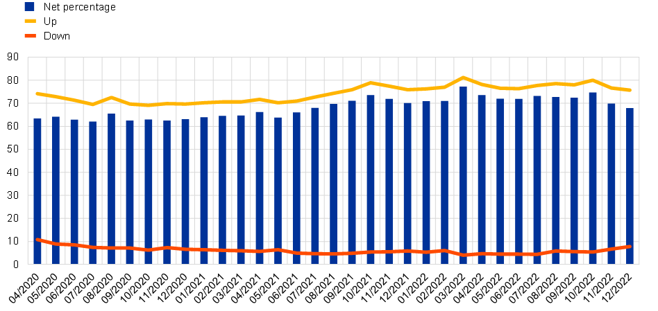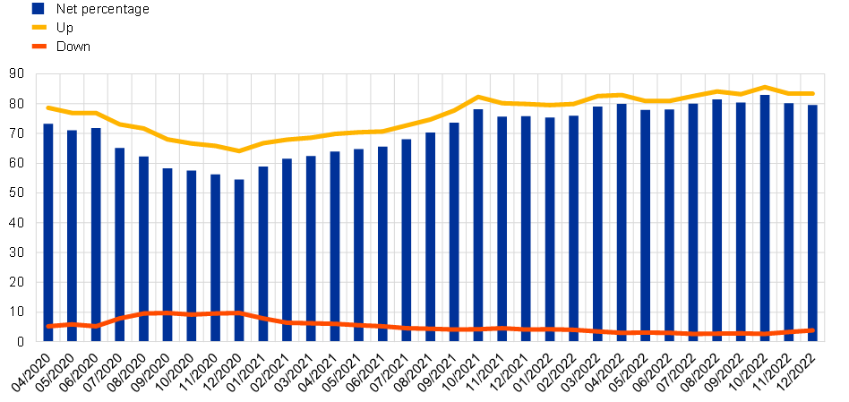 Notes: Weighted estimates. Net percentages are obtained by subtracting the percentage of respondents indicating that prices have decreased from the percentage of respondents indicating that prices have increased.