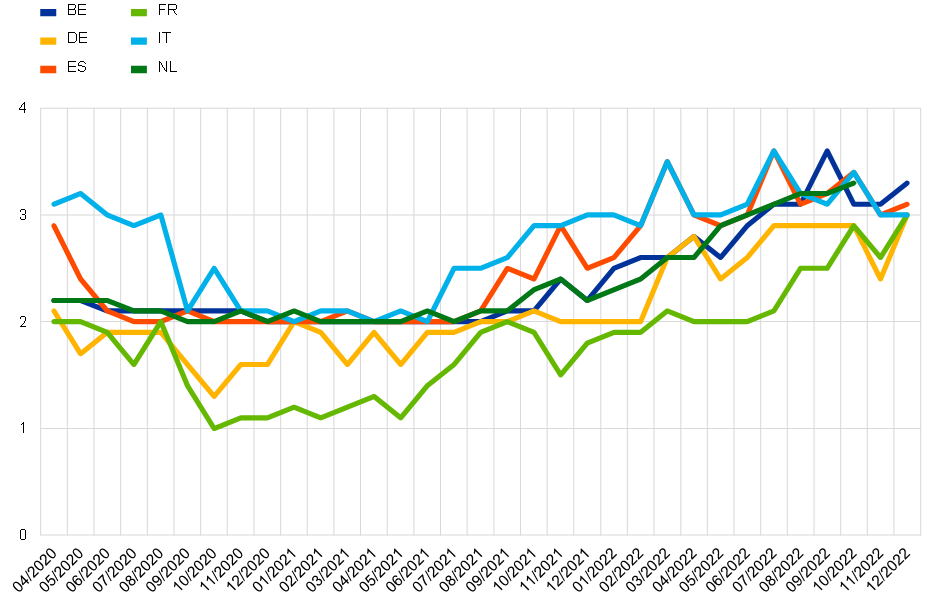 In the open-ended (quantitative) question, respondents are asked: “How much higher/lower do you think prices in general will be 12 months from now in the country you currently live in?”