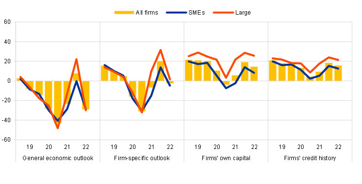 Base: All enterprises. The figures refer to rounds 3-26 of the survey (March 2010-September 2010 to October 2021-March 2022) for all firms and to rounds 19-26 (April 2018 -September 2018 to October 2021-March 2022) for SMEs and large firms.