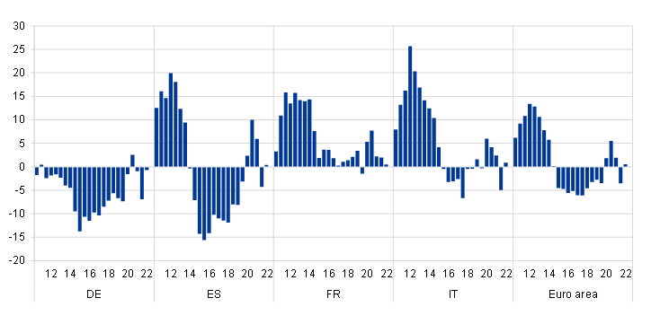 Across countries, trends in firms’ business activity have followed very similar patterns over the past six months (see Chart 19 in Annex 1). Firms in the largest euro area countries showed a very similar recovery in turnover. However, while the widespread increases in labour and other costs led to a net percentage of companies continuing to report a decline in profits for the euro area aggregate, Spanish and Italian enterprises were particularly affected (-12% for both compared with -4% for the euro area as a whole).